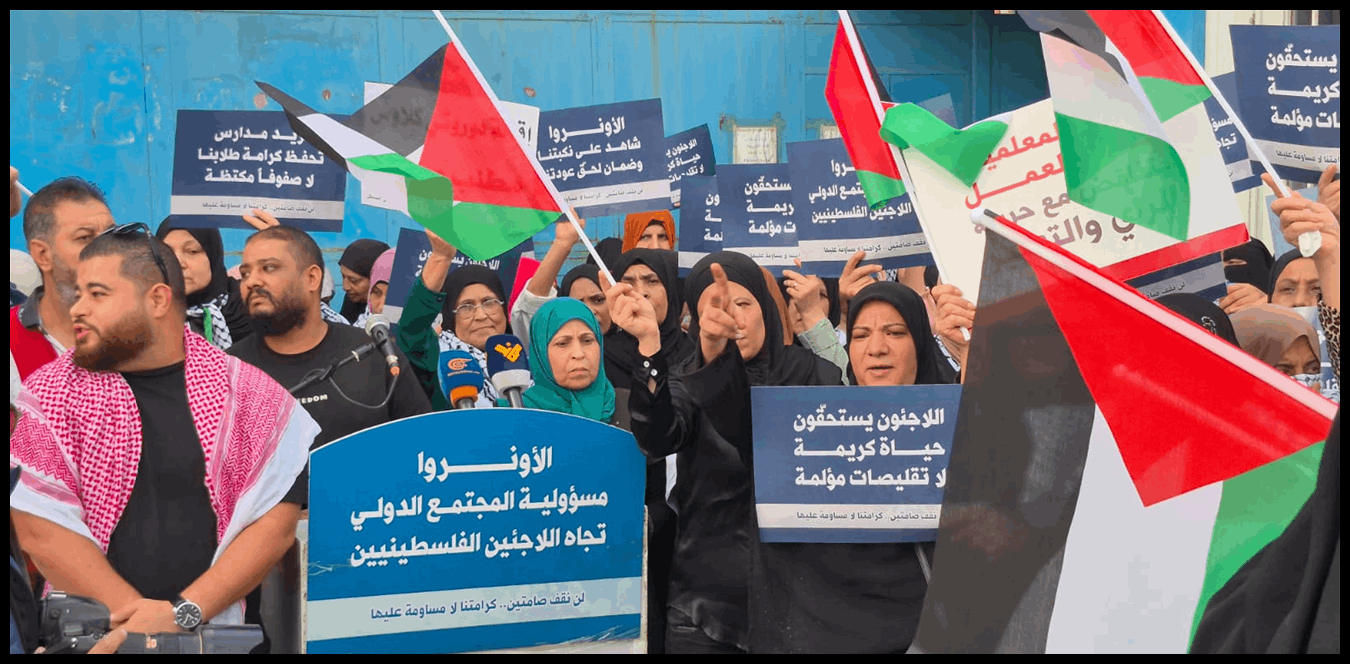 وخلال الاعتصام، ألقى جهاد موعد كلمة توقف فيها عند “ممارسات الاونروا في تقليص الخدمات وأثر ذلك السلبي الخطر على حياة اللاجئين الفلسطينيين ومستقبلهم”، وقال: “إن الأوضاع في المجتمع الفلسطيني في لبنان تزداد مأسوية بسبب تجاهل الأونروا مطالب اللاجئين وحقوقهم ومعاناتهم والقرارات الجائرة لمديرة الأونروا دوروثي كلاوس”.