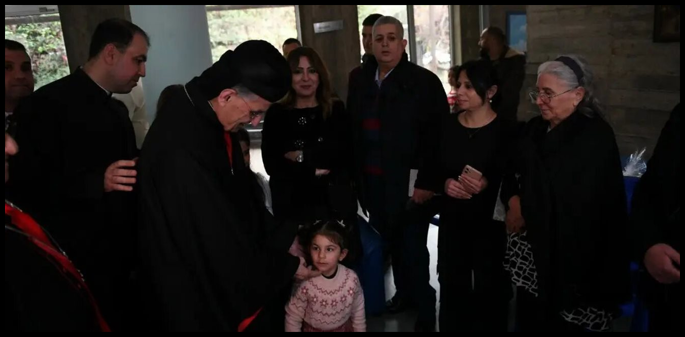 أضاف: “نحن نصلي معكم كل يوم حتى يمس الله الضمائر ويوقف الأيادي المجرمة التي تحمل السلاح وتقتل وتدمر وتخرب، مع كل هذا فإن رجاءنا لا يخيب ولا بد أن يمس الله القلوب وتتوقف اليد المجرمة التي تستعمل السلاح، نحن نشكر الله لأنكم هنا تحت سقف يحميكم وهناك من يؤمن لكم كل ما يلزم لكن لا بديل عن البيت ابدا وهو ما سمعته منكم، في هذه الفترة علينا أن نتحمل وان نحمل هذا الصليب الصعب والثقيل، صليب الحرب والويلات والقتل والدمار والتهجير، وهو ما لا يريده الله، الحرب هي من صنع البشر الكفرة، لكننا نشكر الرب من جديد على وجود مكان تحمون فيه رؤوسكم وتحصلون على كل احتياجاتكم الضرورية اضافة الى تعليم أولادكم ويعطيهم برامج ليس لأنهم باقون هنا لكن لتمرير هذه الفترة”.