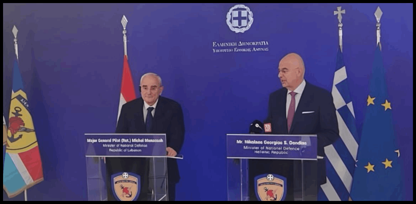 يلتقي وزير الدفاع الوطني اللواء ميشال منسى في أثينا نظيره اليوناني نيكولاوس جورجيوس ديندياس، في إطار زيارته الرسمية إلى الجمهورية اليونانية.