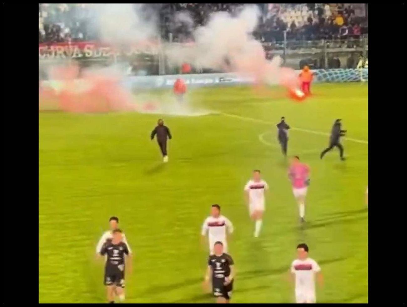 ⚠️ Players & officials run for shelter as Foggia tifosi invade the pitch following their 1-0 defeat at Monopoli