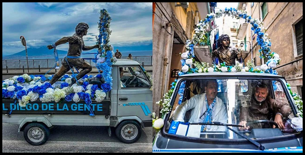 يوم ٣٠ تشرين الاول – اكتوبر الفائت، عاد إلى شوارع نابولي، التي احتفلت بما كان سيوافق عيد الميلاد الخامس والستين لأسطورتها دييغو أرماندو مارادونا، عبر جولةٍ لتمثال برونزي للاعب على متن سيارة مطلية بلون النادي الأزرق السماوي.