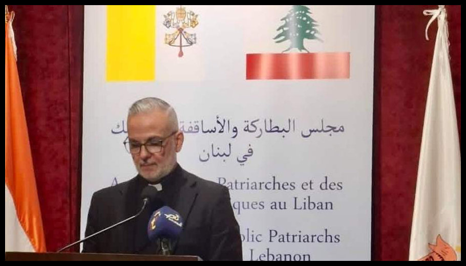 ثم ألقى السفير البابوي كلمة، نقل فيها تحية قداسة البابا لاون الرابع عشر وعاطفته واهتمامه بلبنان وشعبه.