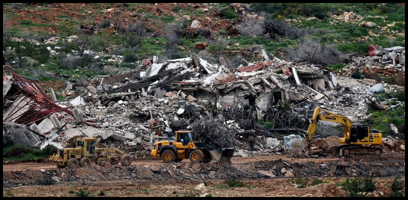 ميدانيا، كتبت “الشرق الاوسط”: لا يضيّع الجيش الإسرائيلي لحظة خلال وقف النار في المنطقة التي يحتلها في الجنوب اللبناني الفارغ من سكانه المهجّرين؛ فهو يعمل، ليل نهار، وعلى مساحة عريضة تزيد على 800 كيلومتر مربع (نحو 8 في المائة من مساحة لبنان) على مسح المباني عن وجه الأرض.